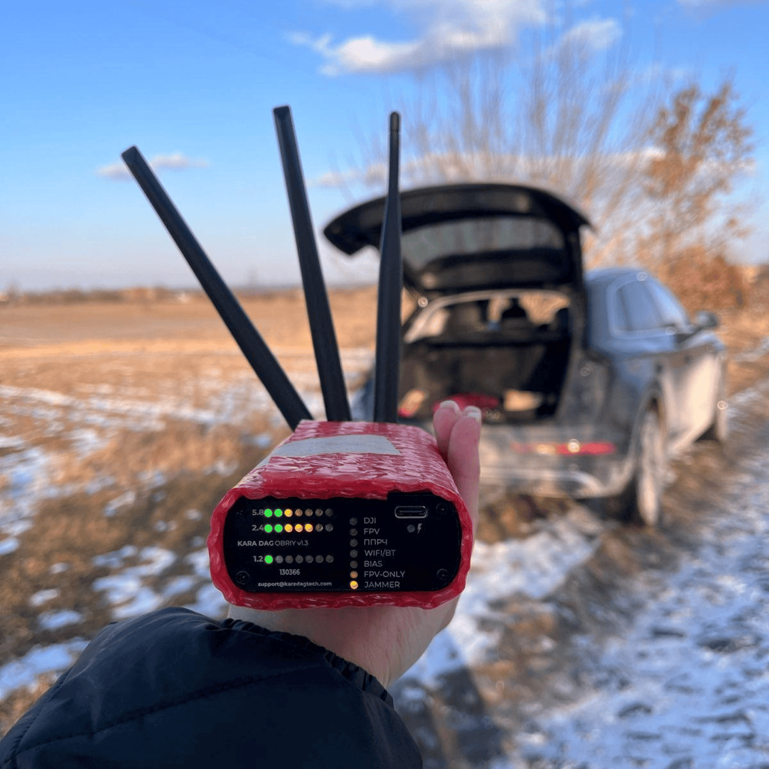 Obriy is a wearable device that detects the approach and direction of DJI-type and FPV drones from 2.5 to 5 km away. It is intended to be used by tourists, travelers, homeowners, and farmers to protect their privacy and safety.